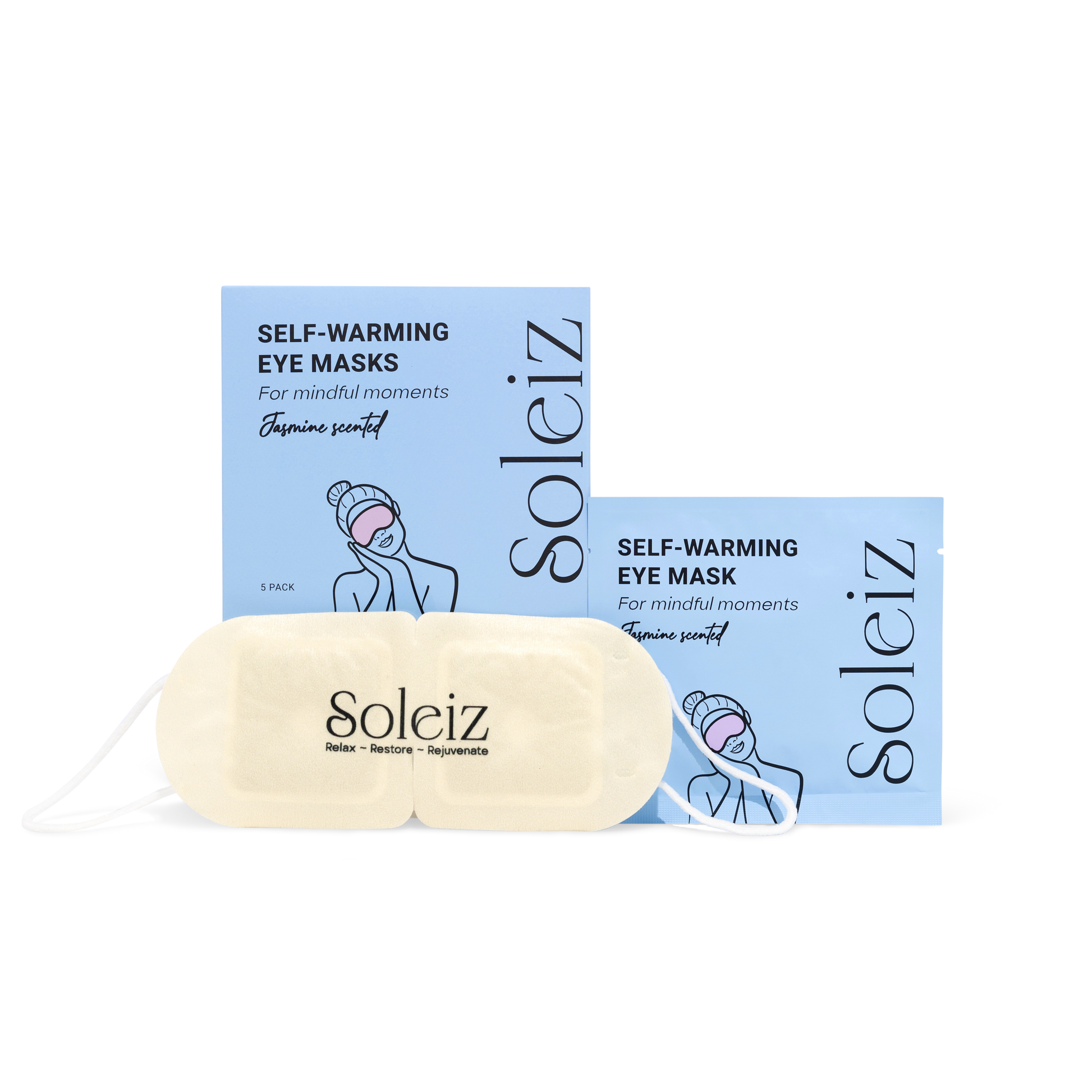 Melt into stillness with Soleiz self-warming eye masks, designed to soothe both eyes and mind. As soon as you open the pouch, the mask gently warms on its own, no microwave, cords, or fuss needed. Within minutes, you’ll feel a comforting heat that lasts for a minimum of 20 minutes, helping you pause, rest, and reset wherever you are.