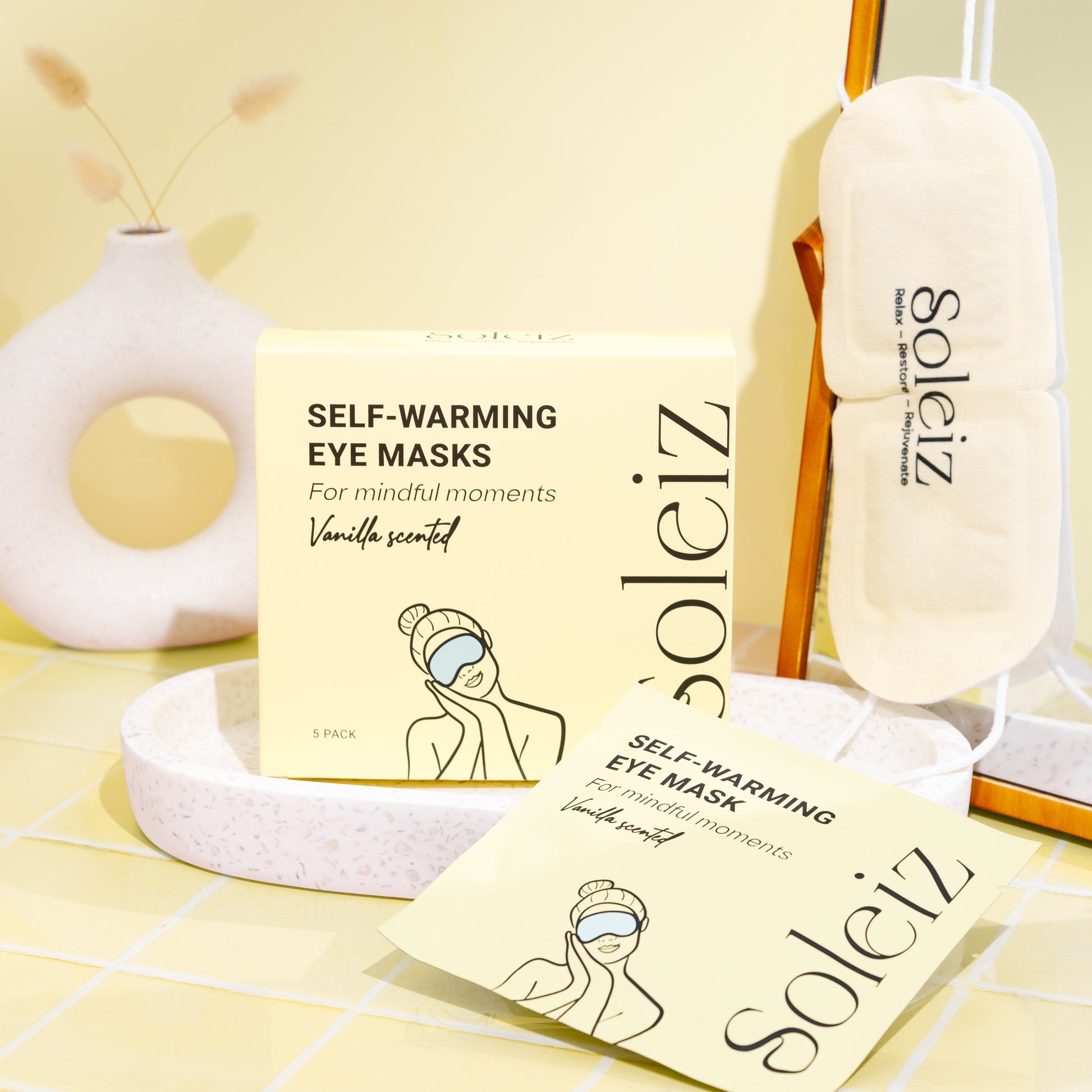 Melt into stillness with Soleiz self-warming eye masks, designed to soothe both eyes and mind. As soon as you open the pouch, the mask gently warms on its own, no microwave, cords, or fuss needed. Within minutes, you’ll feel a comforting heat that lasts for a minimum of 20 minutes, helping you pause, rest, and reset wherever you are.